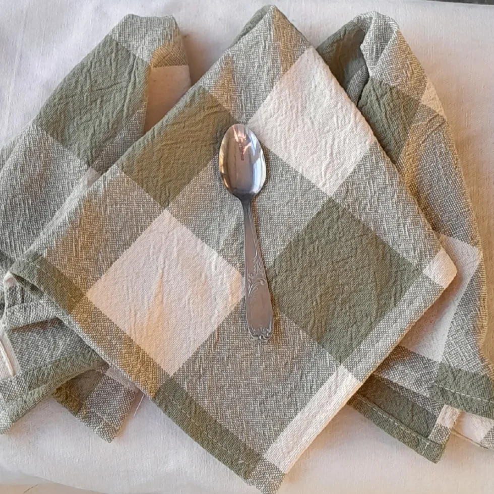 Pack x 6 uni. servilletas de tusor algodón estampa de cuadros verdes 40×40 cm.